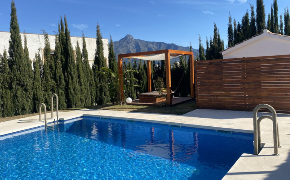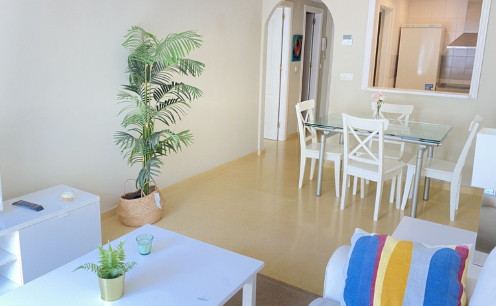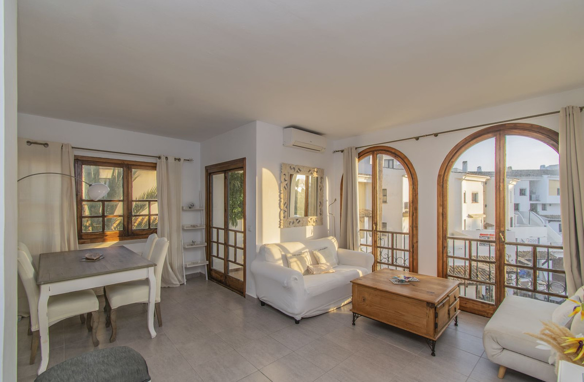Cozy two-bedroom, apartment in the exclusive gated community of Lorcrimar (Nueva Andalucia), just minutes from Puerto Banús, the beach, bars, restaurants, and all amenities. This well-maintained property features a bright living and dining area with access to a private terrace. The separate kitchen is fully equipped, offering ample storage and workspace. Both bedrooms have fitted wardrobes, and the bathroom is well laid out. Additional features include hot and cold air conditioning, manual shutters, and a private parking space. A fantastic investment opportunity for rentals or year round living.