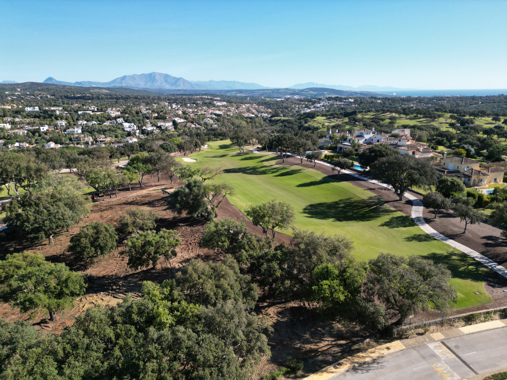 The plot occupies a privileged position above the famous “Old Course” golf course which literally surrounds it. It is an emerald green oasis, with views predominantly over the sea, the clubhouse and of the intense colour of the greens surrounded by ancient corn and holm oaks.