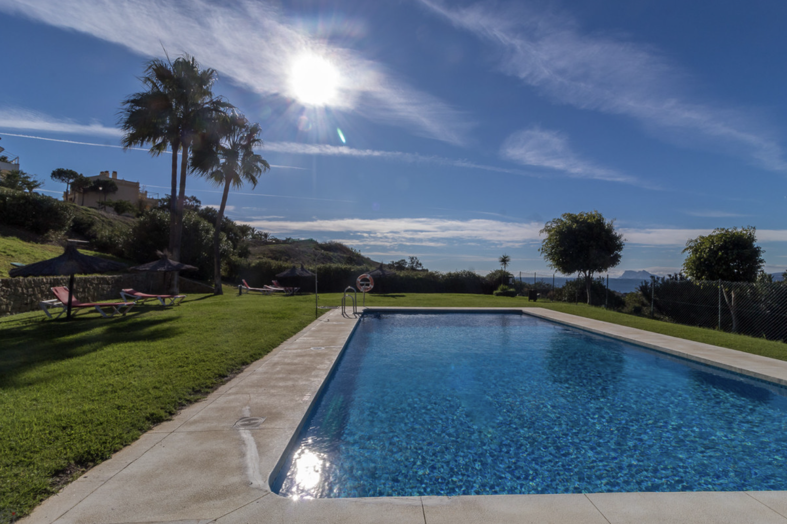 В апартаментах есть две просторные спальни, обе с ванными комнатами, а также отдельная кладовая для дополнительного удобства. Дополнительные возможности включают частную подземную парковку, лифт в здании и доступ к красивому общему бассейну, расположенному в пышных, зрелых садах.